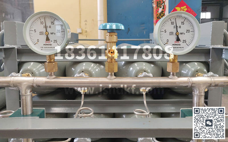 气体集装格的氧、氮、氩、二氧化碳的工作压力是15Mpa,气瓶集装格一般按用户要求可以高压充入高压输出,也可高压充入经过减压器减压,低压输出,该设备使用方便安全可靠,工作效益高,是目前国内受国外影响一种适时的新兴装置。